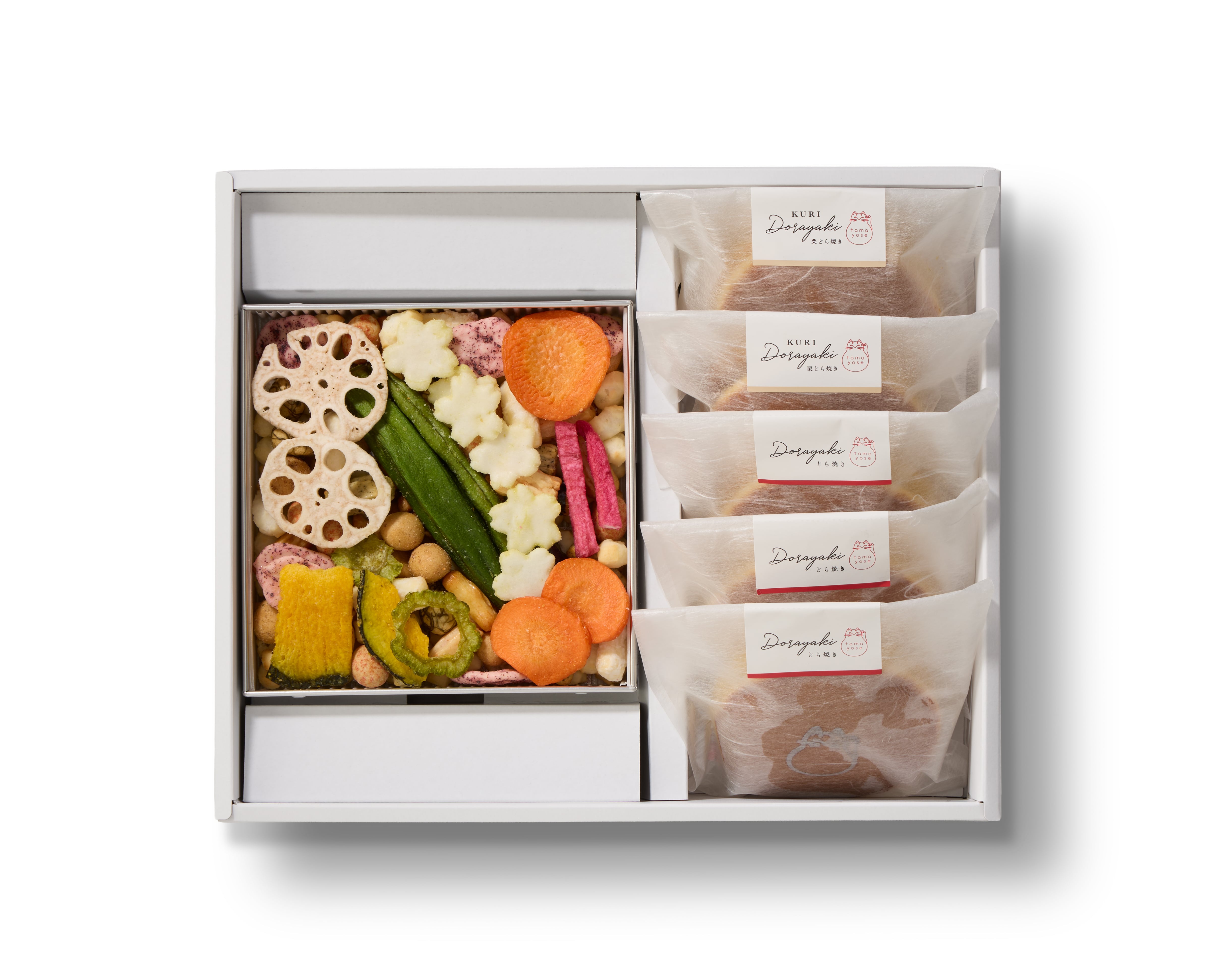 『tamayose』の人気商品である”しょっぱい缶”とどら焼きのセットです。