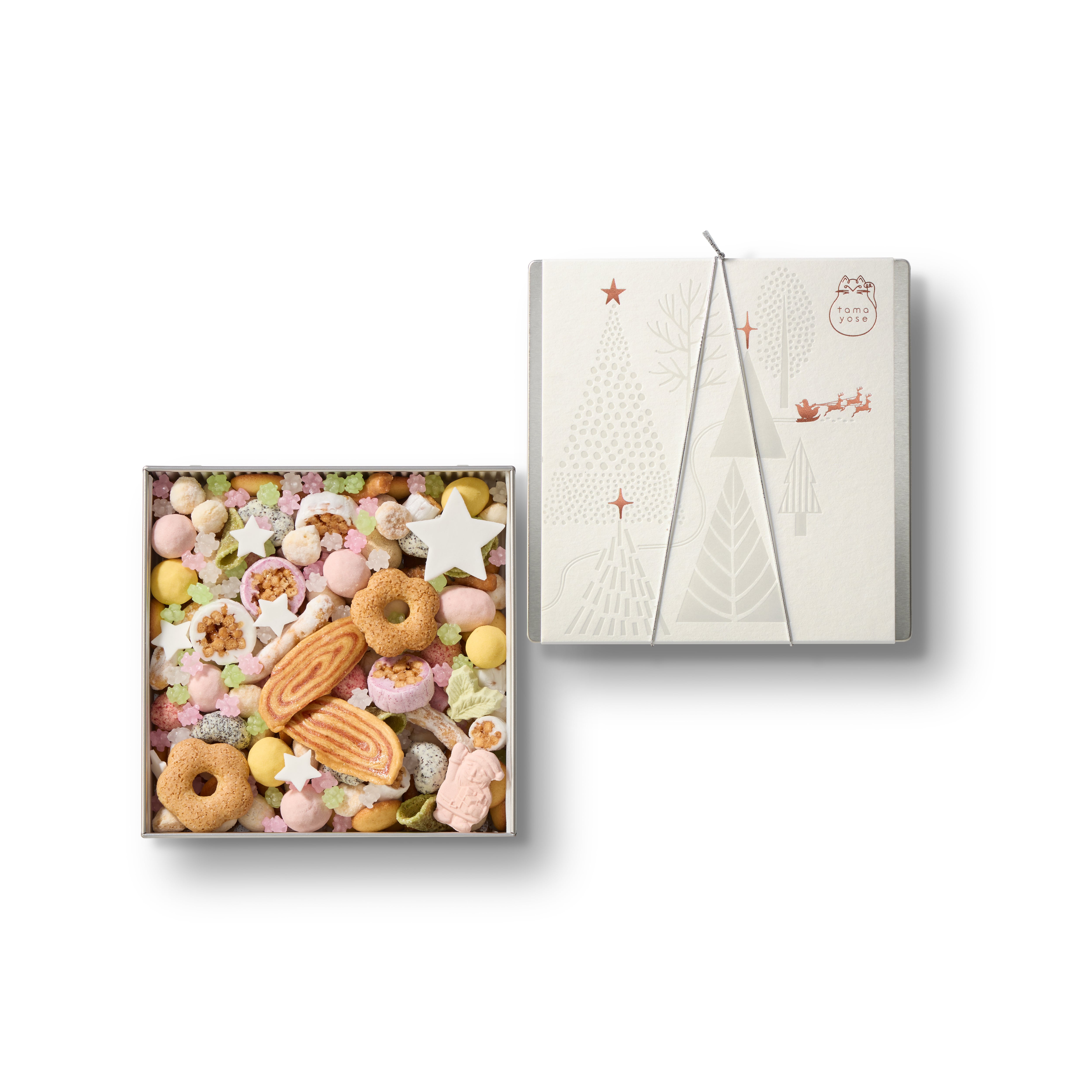 雲平(星)/和三盆(サンタクロース・柊)/笹かりんとう/奉天/そばぼうろ/生姜ぼうろ/カシューナッツアールグレイ味/金平糖/抹茶つまみ煎餅/白樺かりんとう/ごまかりんとう/かぼちゃかりんとう/和三盆豆/小梅豆/きなこ豆/いちごミルク豆/バナナ豆